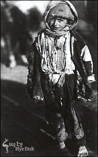 It was after the middle of July when the people from the eastern half of the city of Harpoot were sent into exile. It happened that I was returning from Mezireh at that time and met the dismal procession. From a distance I could see the throng starting out from the city and winding down the road. Just before I reached the foot of the hill, I met the first of the exiles-the brisker and more energetic leading on. There were a number of young boys marching on ahead, laughing and playing as they went. They knew nothing of the meaning of the journey, and for them it was like starting off for a picnic trip. But those who followed on were in no picnic mood. Even the more fortunate ones who were strong and healthy and had no reason to dread the journey so far as the weariness of the march was concerned, and who started out with as good courage as might be expected, walked along briskly, some driving their donkeys loaded with rolls of bedding and sacks of bread.